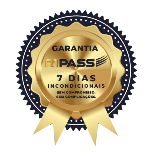 No R1 Pass, acreditamos tanto na qualidade do nosso método e na transformação que ele fornece que oferece uma garantia incondicional de 7 dias. Você pode experimentar todo o conteúdo do curso sem compromisso e, se não estiver satisfeito por qualquer motivo, nos devolveremos 100% do valor investido. Sem perguntas, sem burocracia, sem estresse.